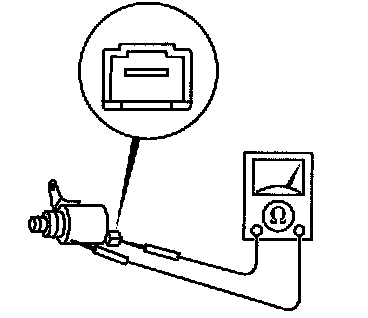 3. Apply battery positive voltage to terminal D and battery negative voltage to terminal 1, and verify that operating sound is heard from solenoid.