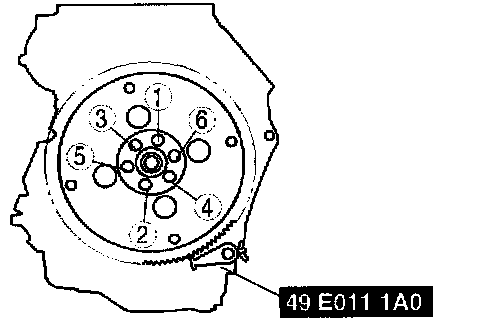 6. Tighten the drive plate mounting bolts in two or three steps.
