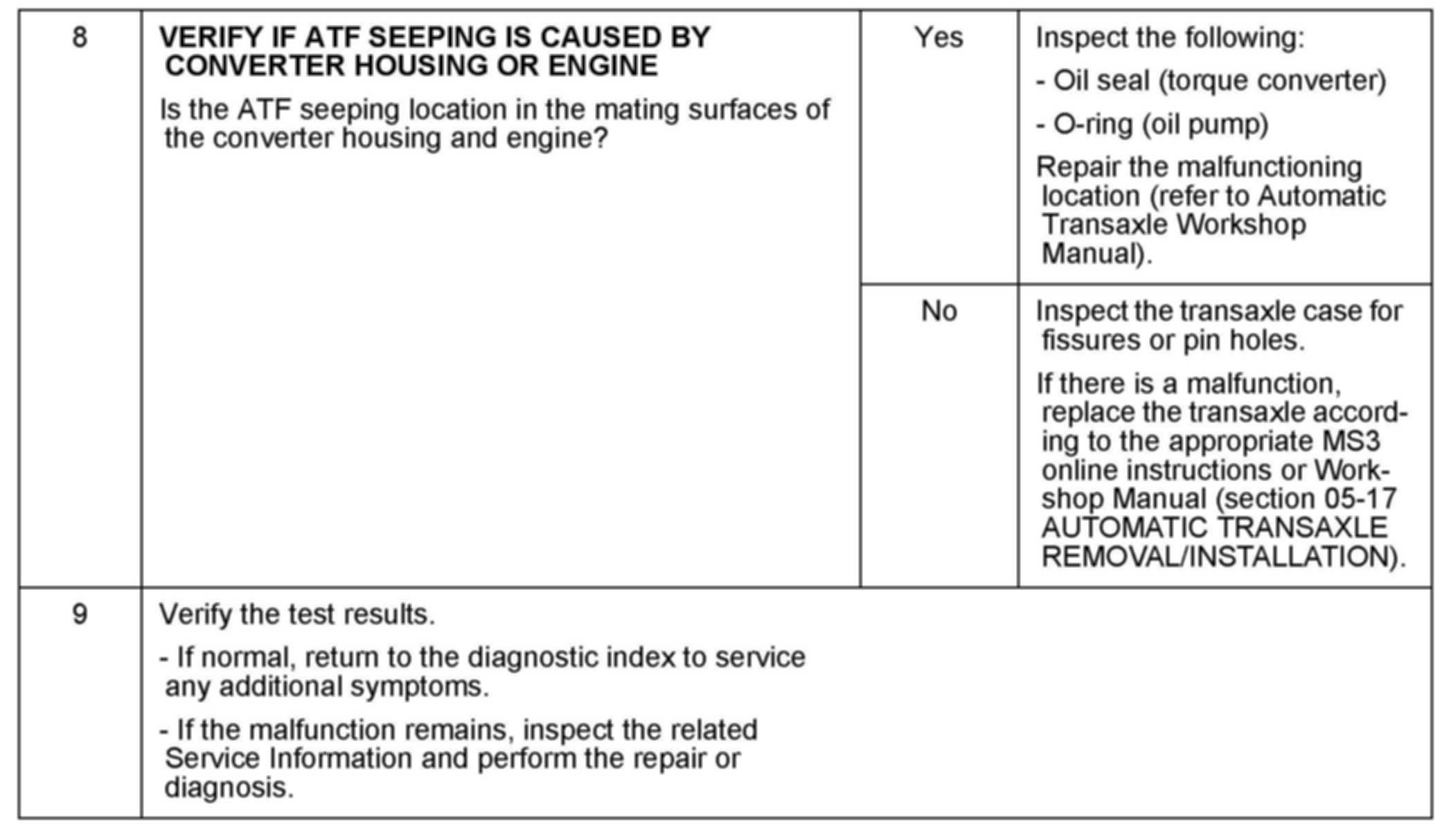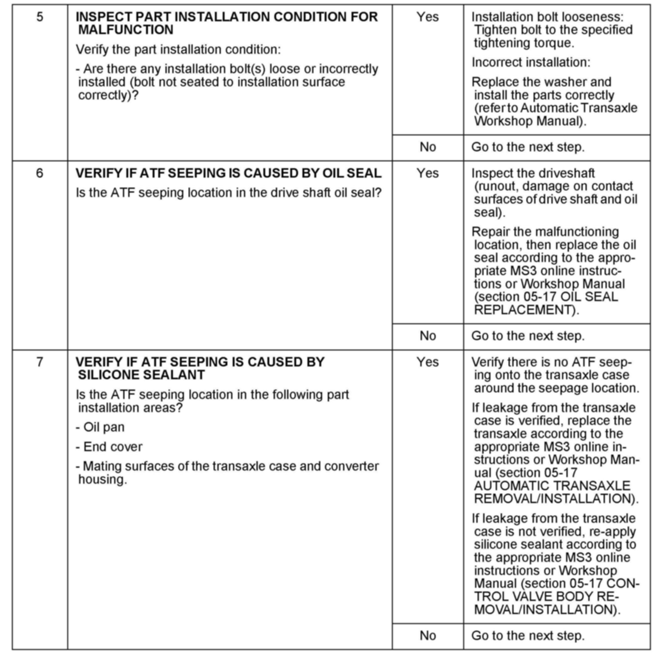 DIAGNOSIS AND REPAIR PROCEDURE FOR ATF SEEPAGE