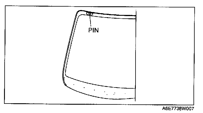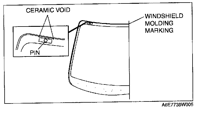4. If installing reused glass, install pins at the ceramic void on the upper part of the windshield.