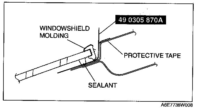 NOTE: Before removing the windshield from the body, mark the position of the windshield by affixing tape to the windshield and body panel.