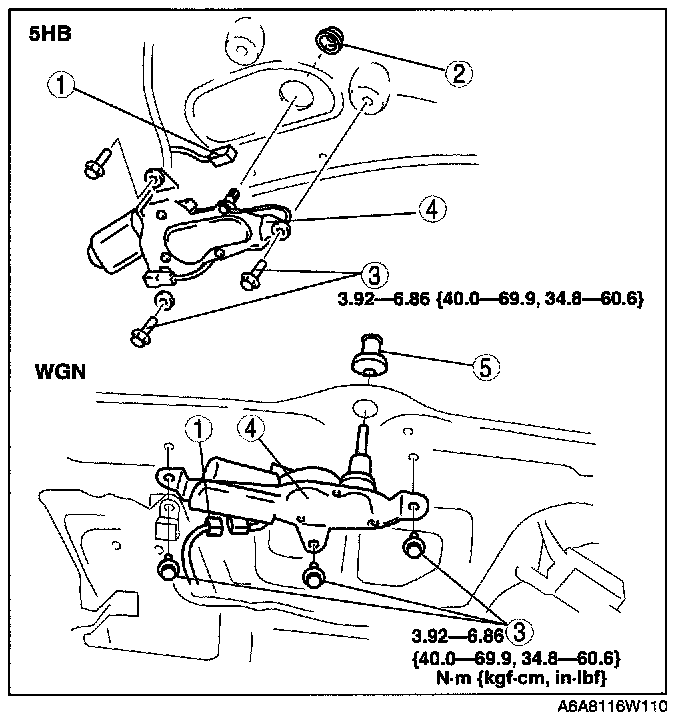 REAR WIPER MOTOR REMOVAL/INSTALLATION [5HB, WGN]1. Disconnect the negative battery cable.