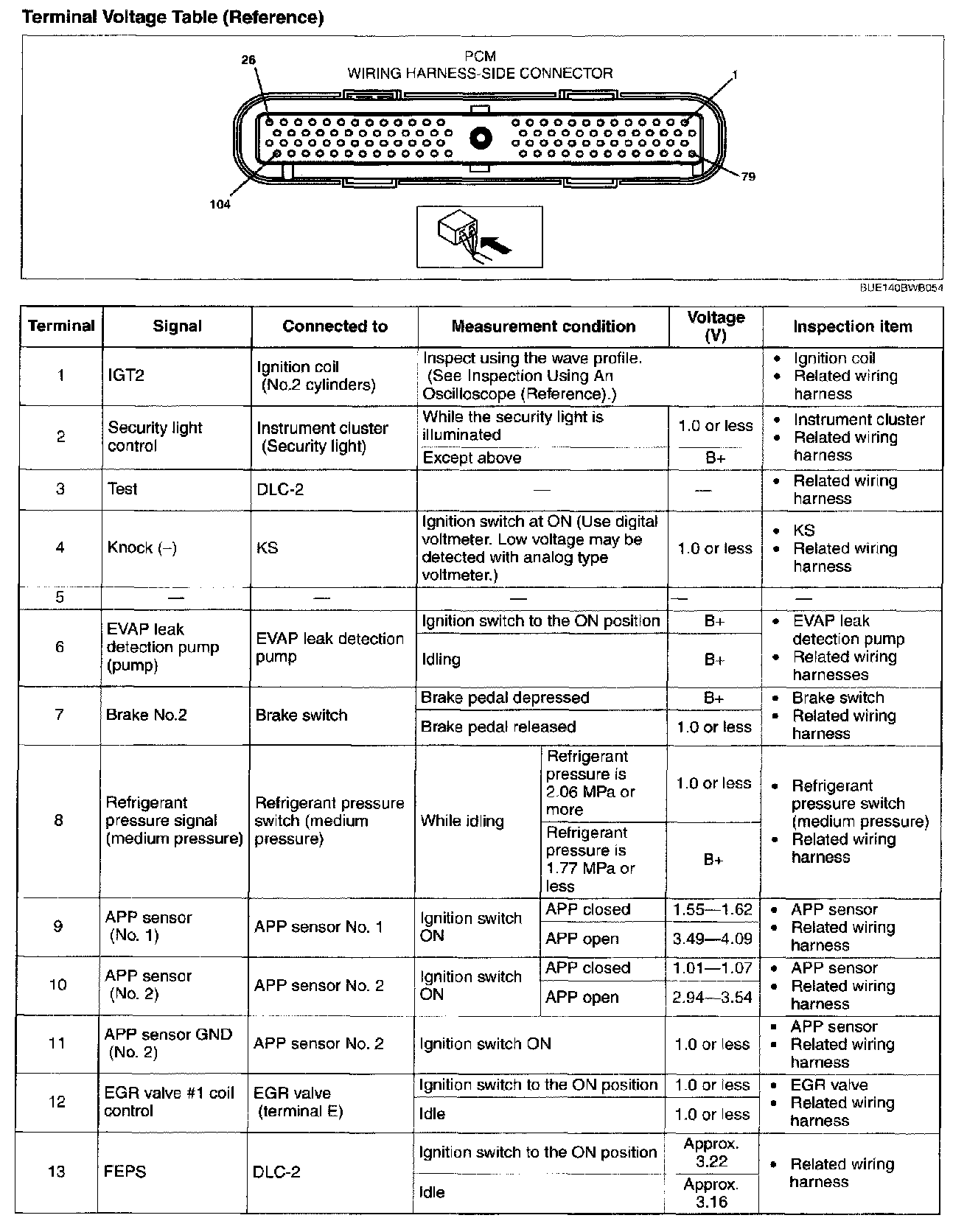 Terminal Voltage Table (Reference) - Terminals (1 - 13):