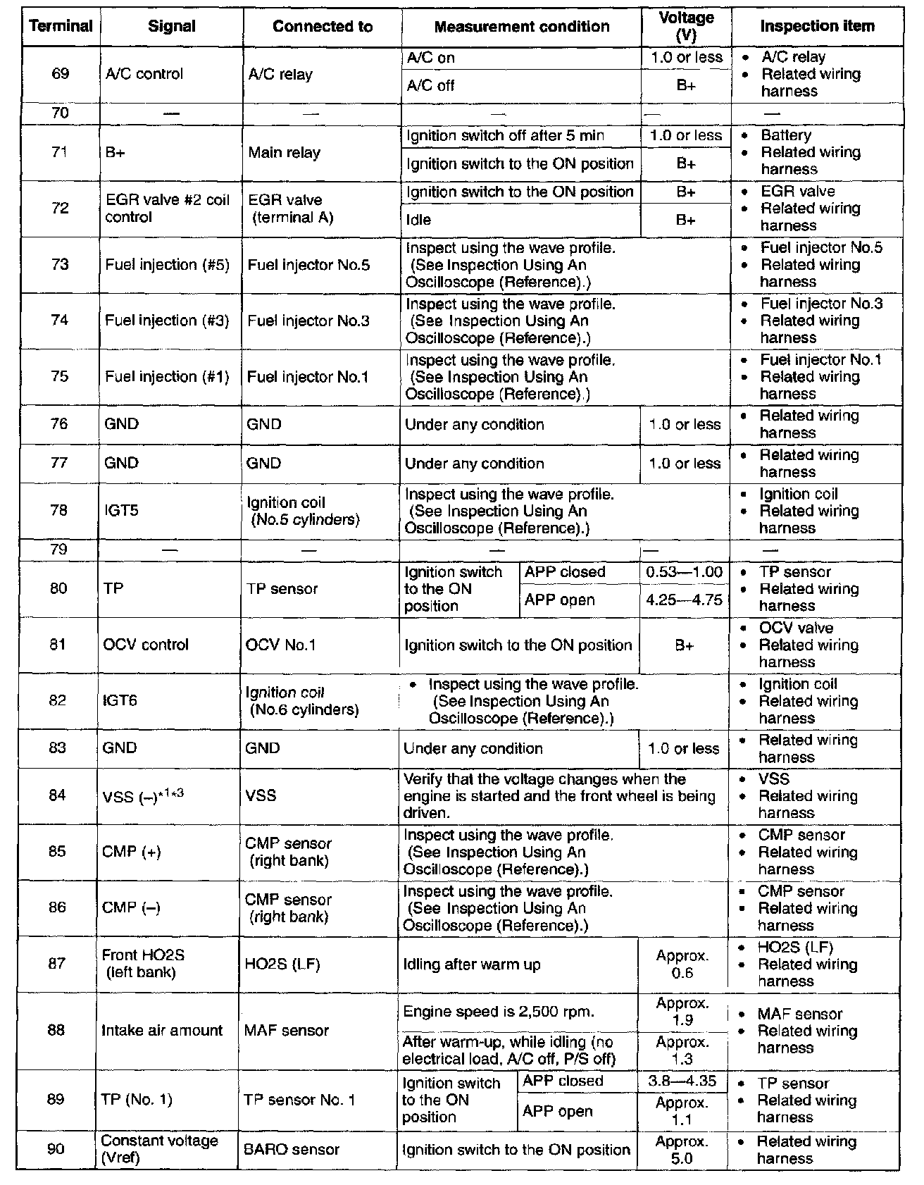 Terminal Voltage Table (Reference) - Terminals (69 - 90):