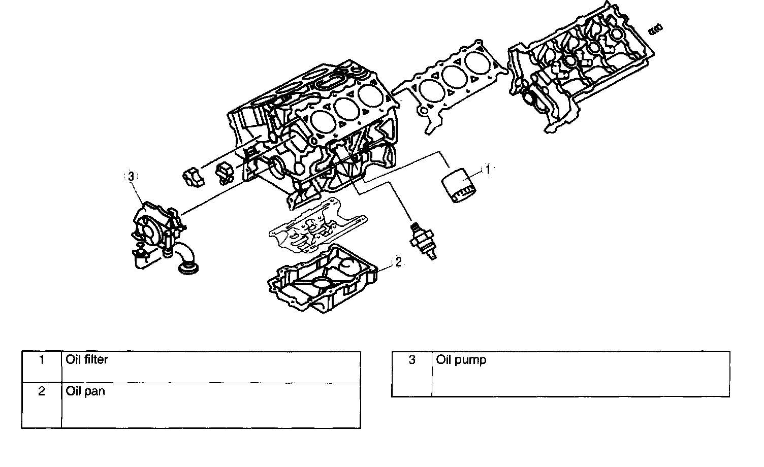 1-Oil Filter, 2-Oil Pan, 3-Oil Pump: