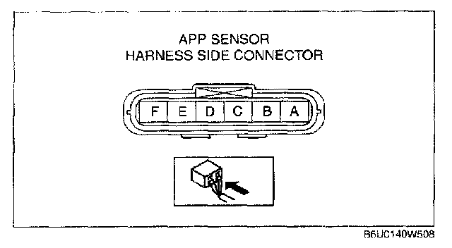 - APP sensor terminal D (harness-side) and power supply.