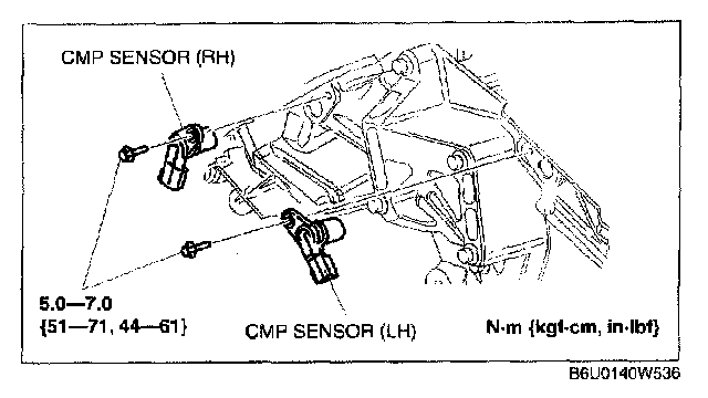 CAUTION: When foreign material such as an iron chip is on the CMP sensor, it can cause abnormal output from the sensor because of flux turbulence and adversely affect the engine control. Be sure there is no foreign material on the CMP sensor when replacing.