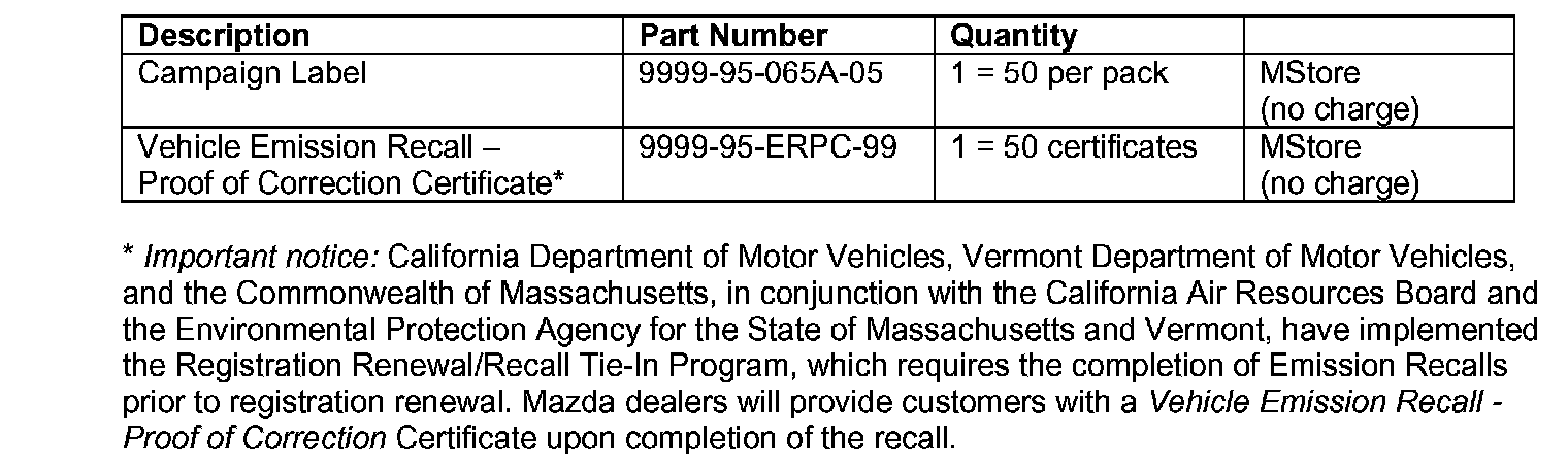 Use MStore to order additional Campaign labels (1=50 per pack) and Vehicle Emission Recall - Proof of Correction certificates (1=50 certificates).