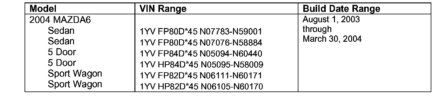 On some 2004 MAZDA6 vehicles equipped with 3.0 liter engines, the pump control circuit failure detection ability may be lower than required regulations due to the initial design of the Powertrain Control Module (PCM) evaporative emission leak monitoring system circuit. If this failure occurs, the vehicle does not meet the OBD-II requirements.