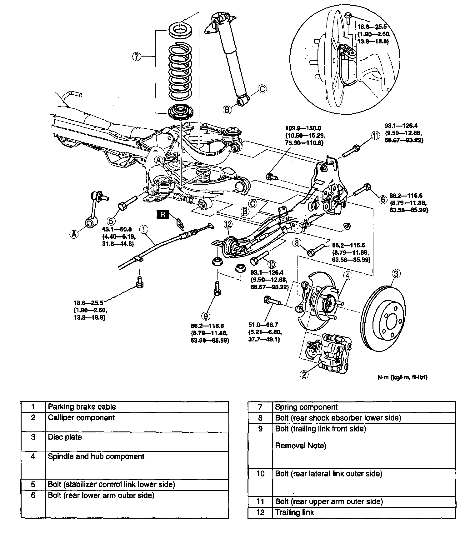 ^ Removing the trailing link is dangerous. The trailing link could fall and cause serious injury or death. Verify that the jack securely supports the trailing link.