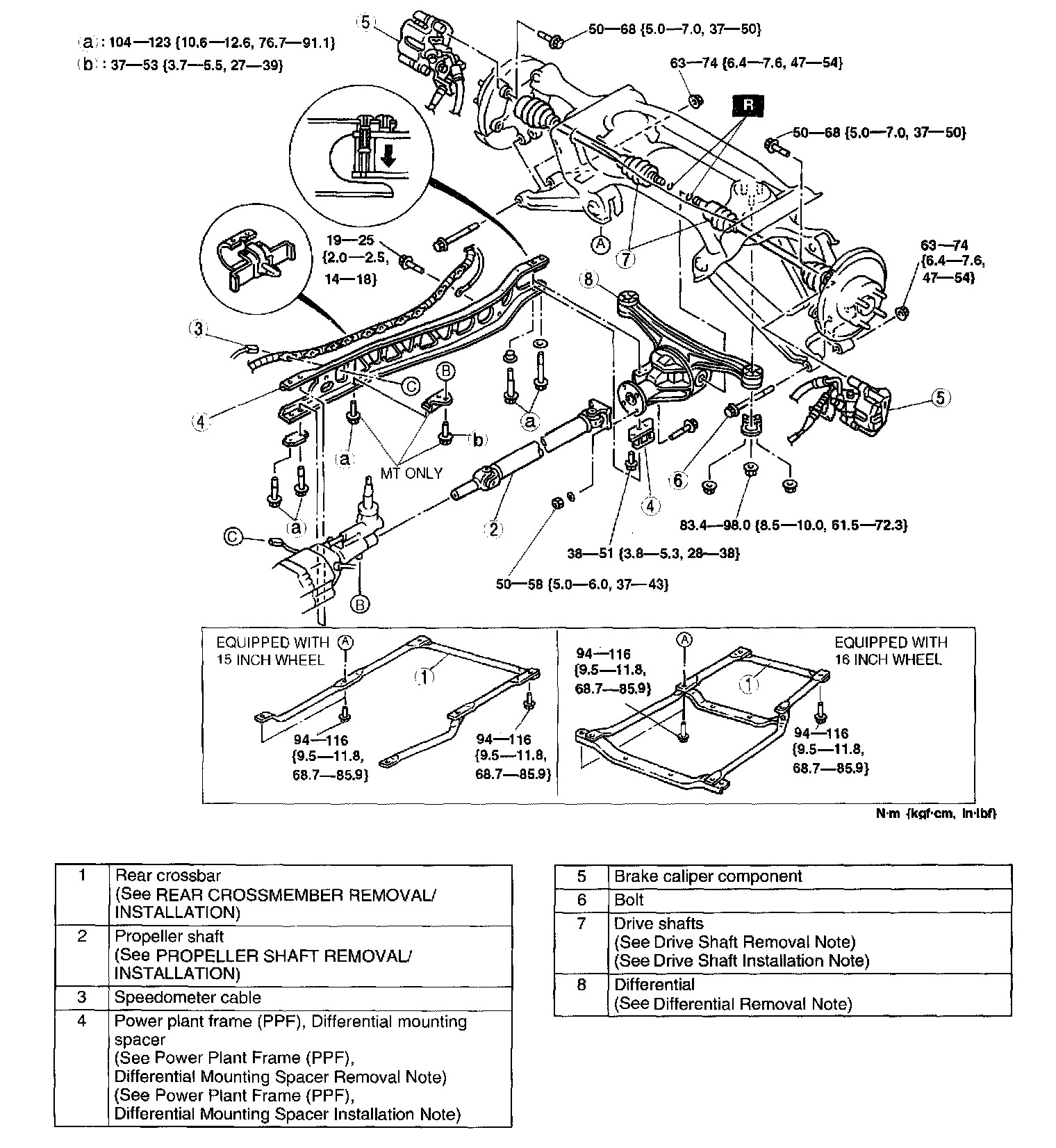 Tightening torque 38 - 51 Nm (3.8 - 5.3 kgf-m, 28 - 38 ft. lbs.)