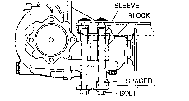 8. To prevent damaging the fire wall and engine mount, support the transmission as follows.
