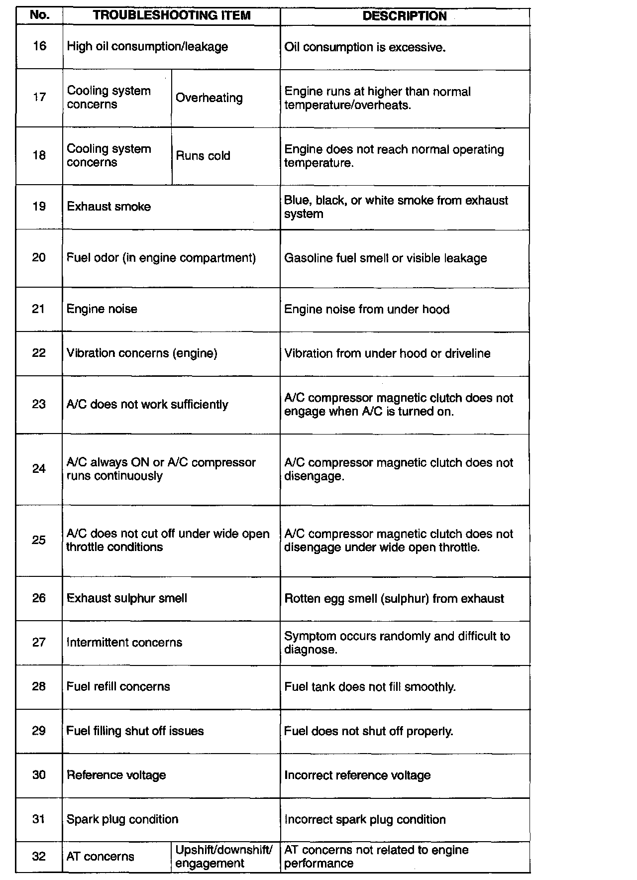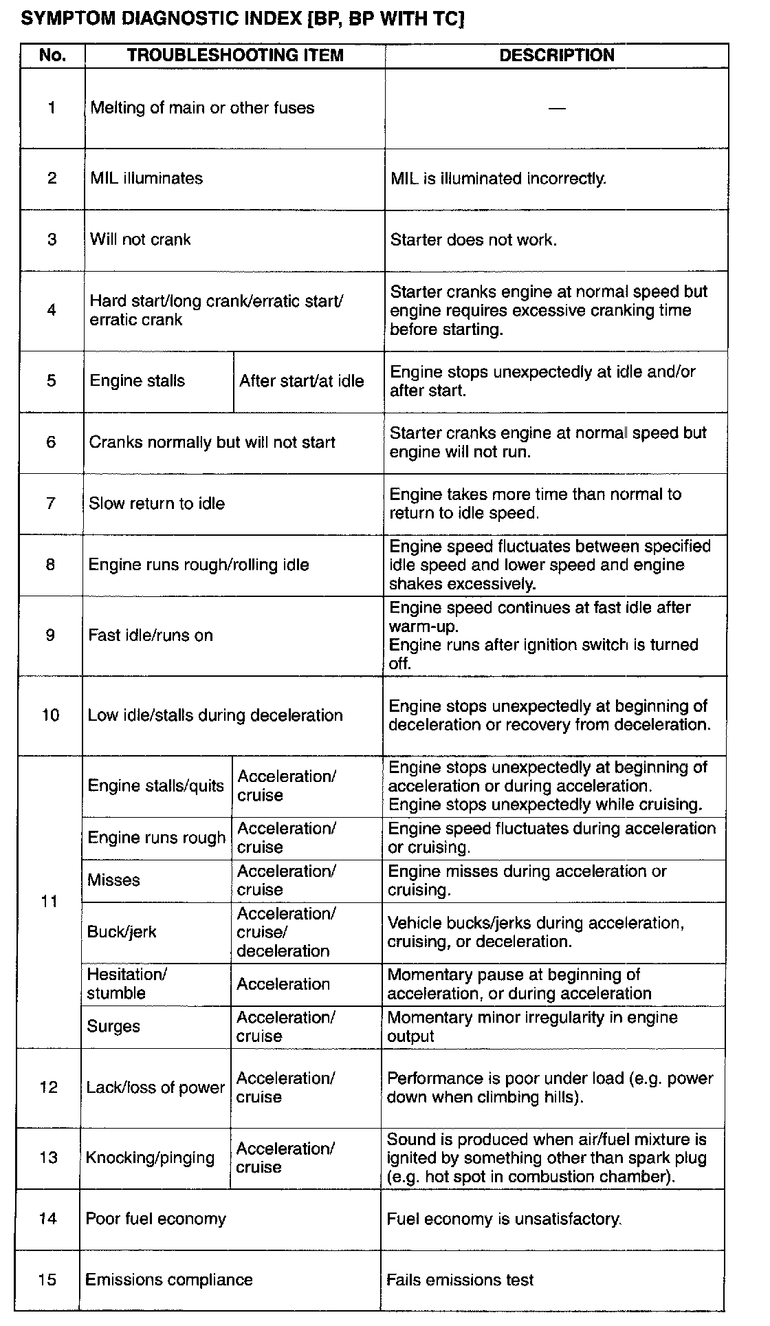 Symptom Troubleshooting Chart - Engine Driveability