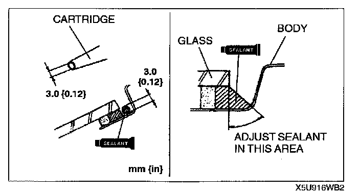 8. Apply a 3.0 mm {0.12 in} bead of sealant between the glass and the body.