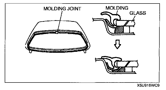 - If the molding is too long, cut the excess molding 10 mm {0.39 in} inside the molding joint edge.