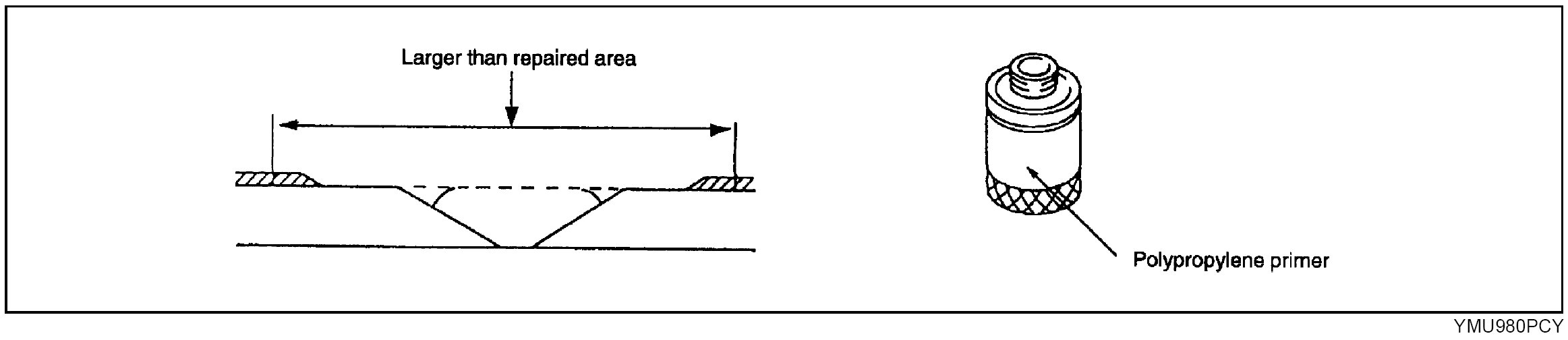 5. Uniformly apply polypropylene primer with a brush to an area larger than the repaired area. Allow to dry about 10 minutes at 20 °C {68 °F}.
