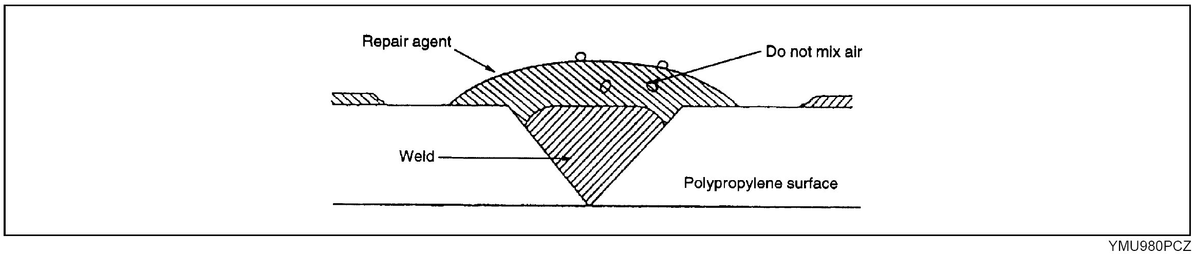 The repair agent for a urethane bumper is also a two part adhesive compound. However, this is different from that for a polypropylene bumper. If the incorrect repair agent is used, the repair will be faulty.