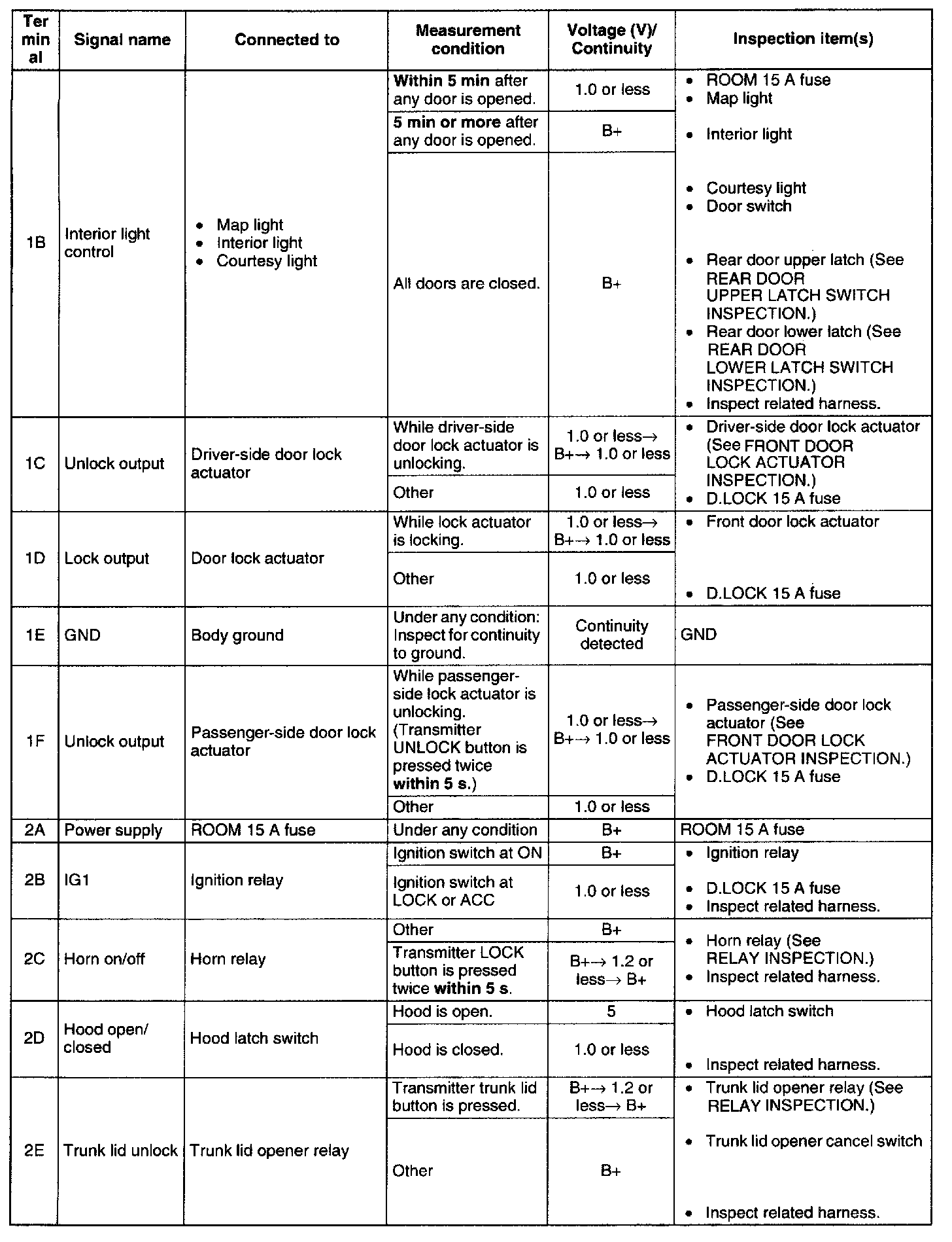 Terminal Voltage Table (Reference) - Terminals 1B - 2E: