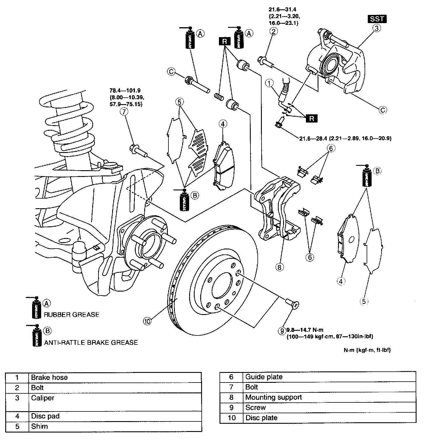 FRONT BRAKE (DISC) REMOVAL/INSTALLATION1. Remove in the order indicated in the table.