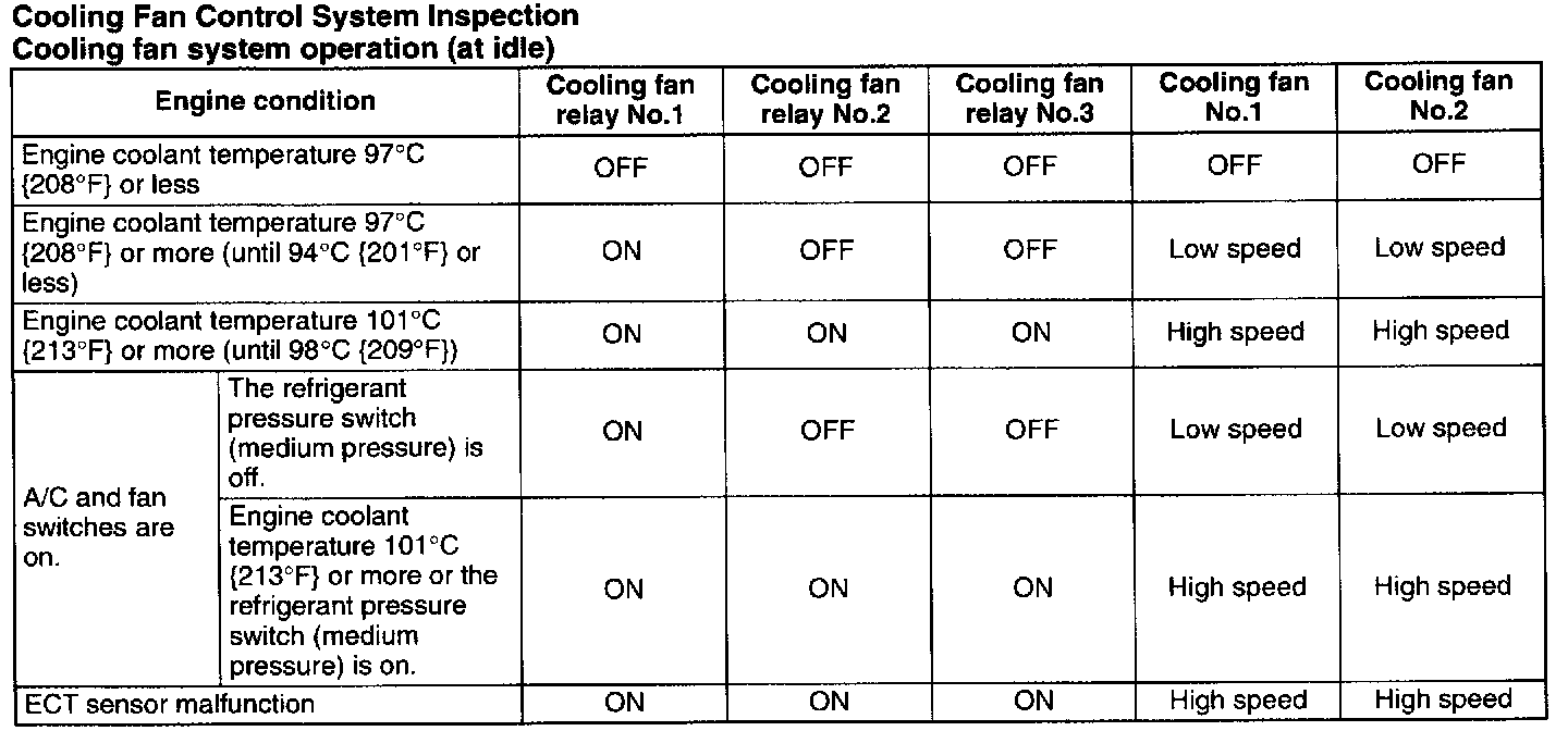 Cooling Fan Control System InspectionCooling Fan Motor System Inspection: