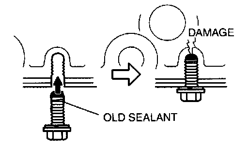 2. When reusing oil pan installation bolts, clean any old sealant from the bolts.