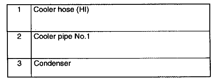 5. Do not allow remaining compressor oil in the condenser and pipes to spill, and remove in the order indicated in the table.