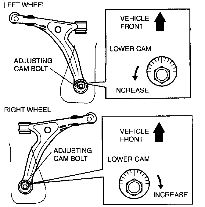 2. Rotate the adjusting cam bolt in either direction to adjust the camber.