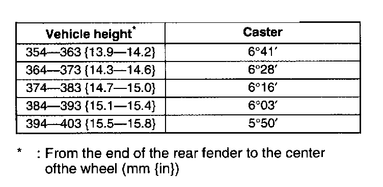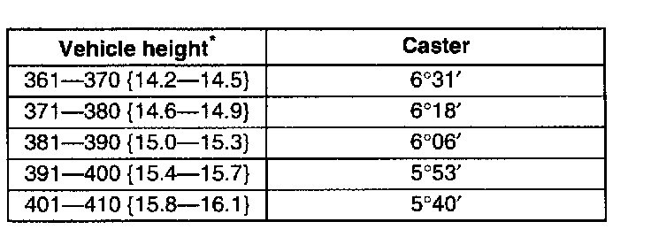 ^ Difference between the left and right dimension for camber and caster is within 1°.