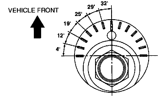^ Toe angle changes by approximately 5 mm (0.2 inch) per one rotation of the tie rod for one wheel.