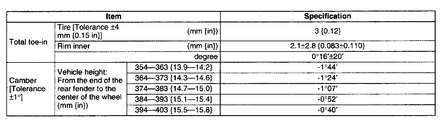 REAR WHEEL ALIGNMENTSpecification (Unloaded Vehicle)