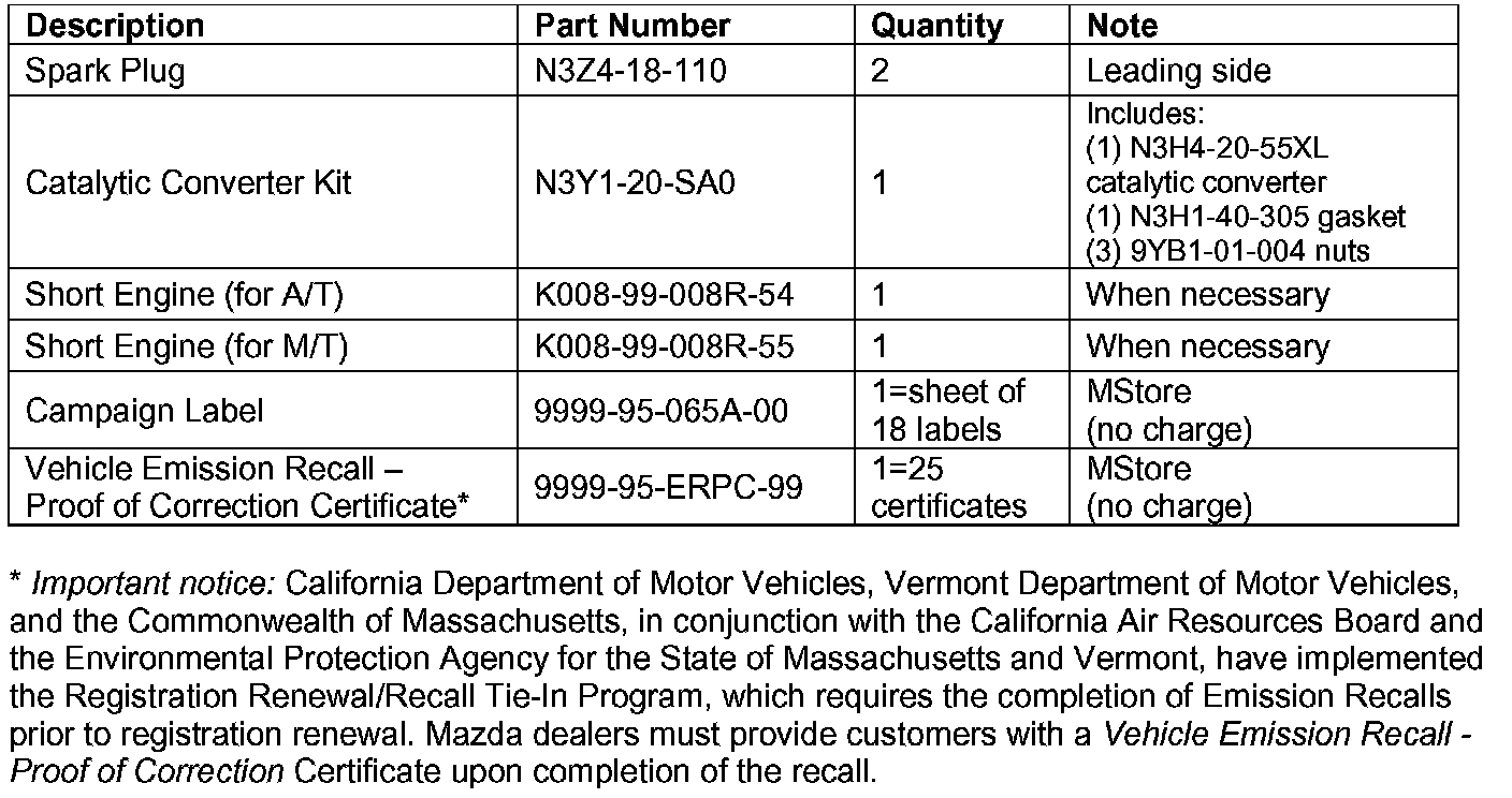 Use MStore to order additional Campaign labels (1 sheet of 18 labels) and Vehicle Emission Recall