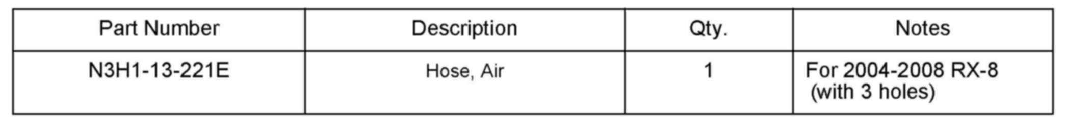 Some vehicles may experience high oil consumption if the air intake hose was replaced with service parts. The cause of this is the number of ventilation holes on the hose was changed from three (3) to two (2) for 2009. However, it appears that the service part hose for 2009 was shipped for 2004-2008 RX-8 by mistake since January 8, 2008. If the hose for a 2009 model is installed on a 2004-2008 RX-8, the barometric pressure, which is normally applied on a small hose (A) connected to the metering oil nozzle is plugged. Engine vacuum then goes to the metering oil nozzle instead so that oil is supplied inside the engine is more than the Metering Oil Pump (MOP) injects, resulting in high oil consumption.