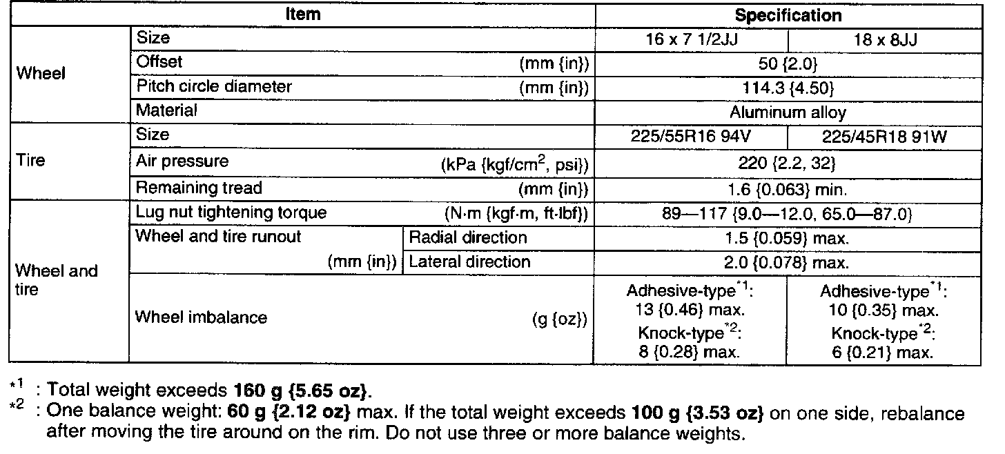 Wheels and Tires: Specifications