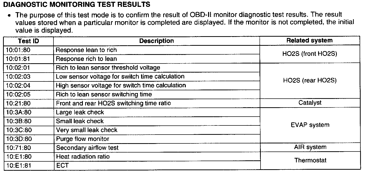 Diagnostic Monitoring Test Results