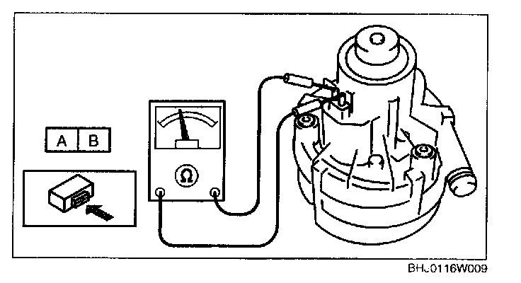 3. Inspect for continuity between the AIR pump terminals A and B.