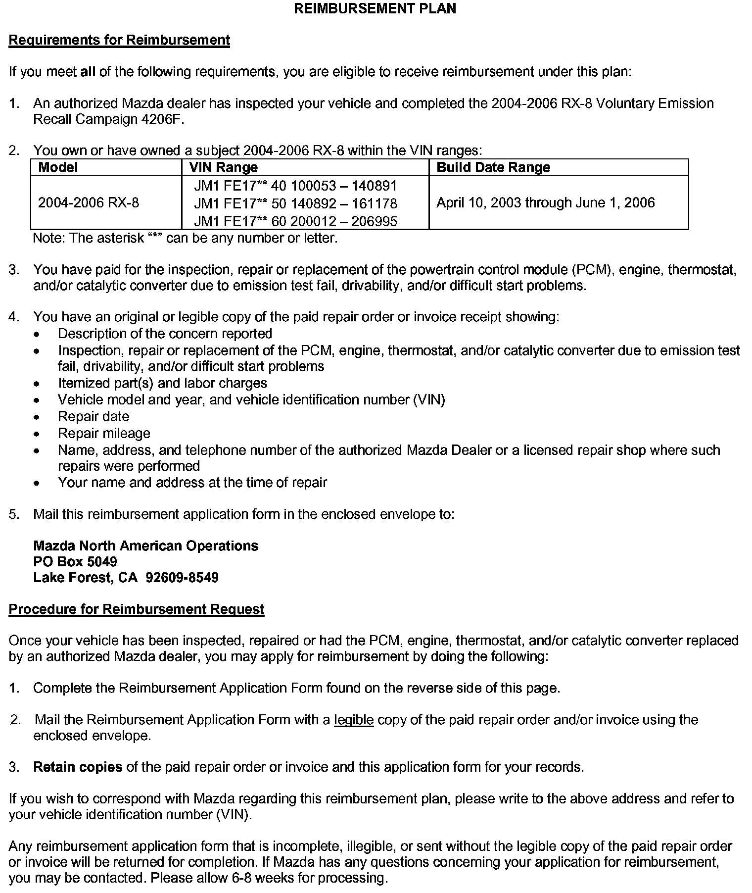 Reimbursement Plan/Application Form