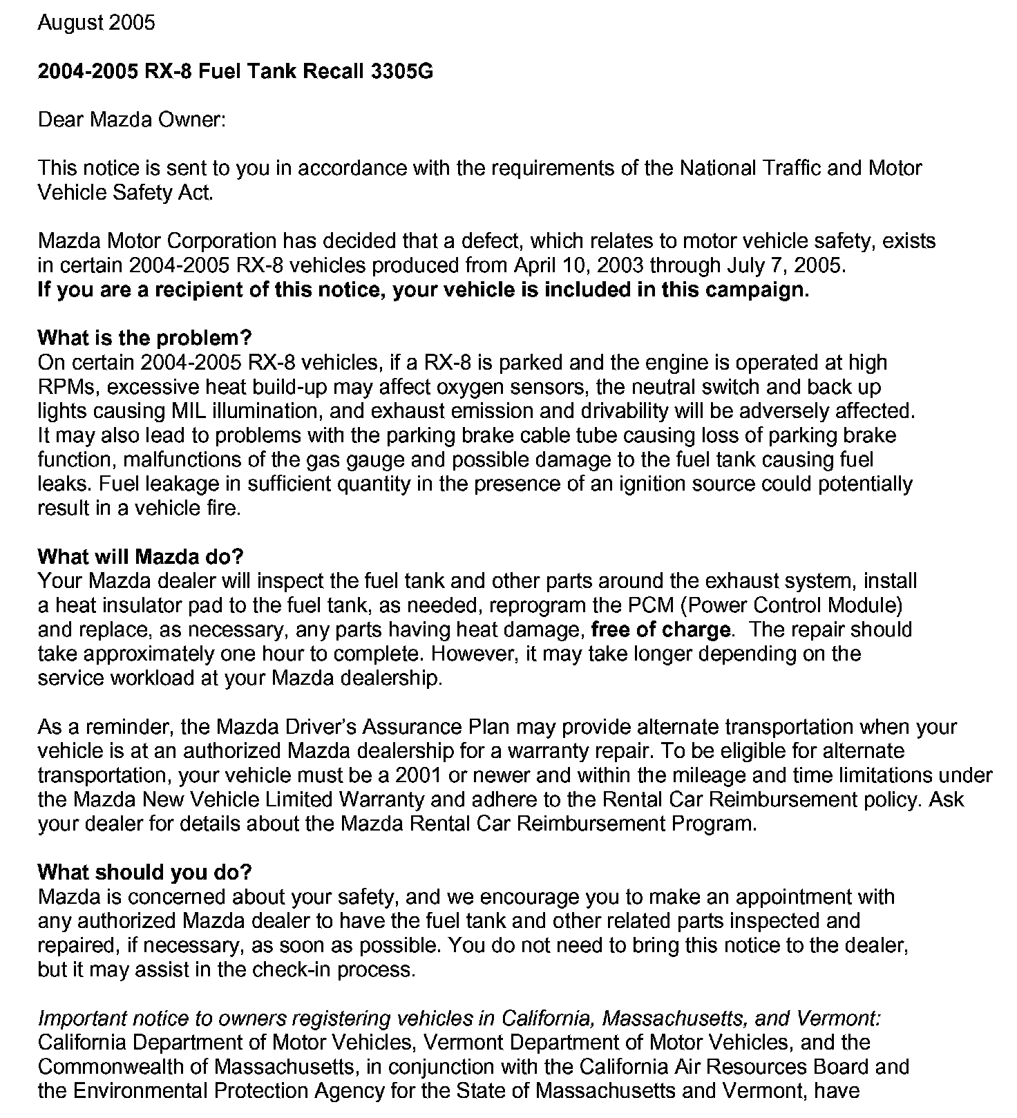 Recall - Excessive Under Car Heat Build Up