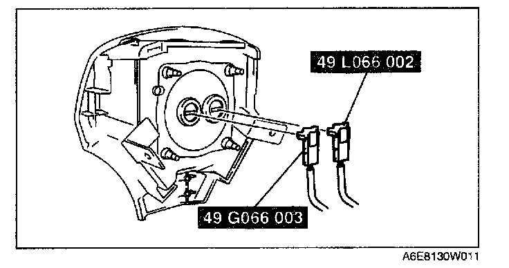 WARNING: The driver-side air bag module is a dual inflator type. If one inflator is forced to operate (deploy), the other may operate (deploy) accidentally. To prevent injury while disposing of the air bag module, make sure to operate (deploy) both driver-side air bag module inflators simultaneously, following the procedure below.
