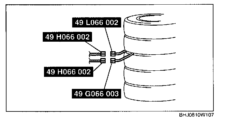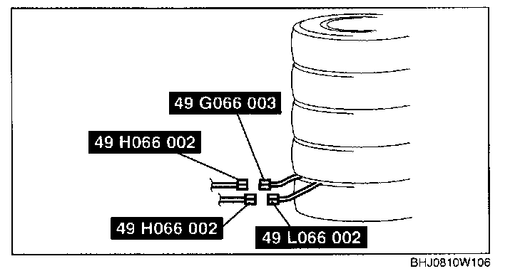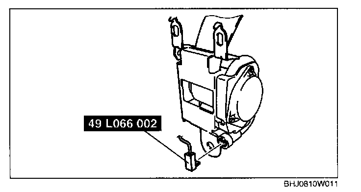 WARNING: If the pre-tensioner seat belt is not properly installed to the tire, serious injury may occur when the pre-tensioner part is operated (deployed). When installing the pre-tensioner seat belt to the tire, make sure the pre-tensioner part is inside the tire.
