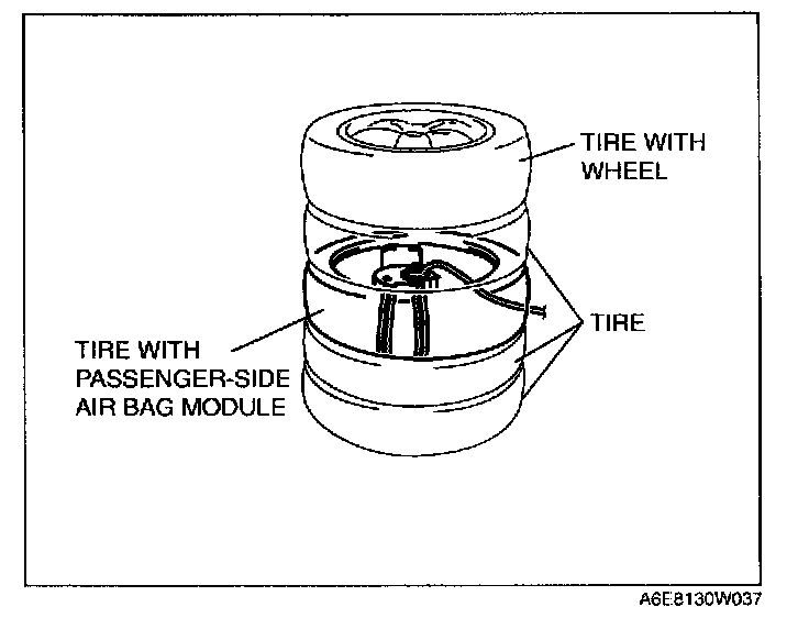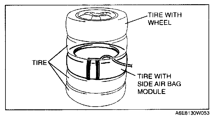 5. Stack the tire with the passenger-side air bag module on top of two tires without wheels Stack a tire without a wheel on top of the tire with the passenger-side air bag module, and then stack another tire with a wheel on the very top