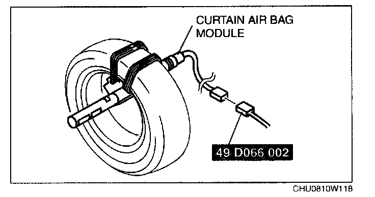 CAUTION: Deploying the air bag modules and pre-tensioner seat belts inside the vehicle may cause damage to the vehicle interior. When the vehicle is not to be scrapped, always deploy the air bag modules and pre-tensioner seat belts outside the vehicle.
