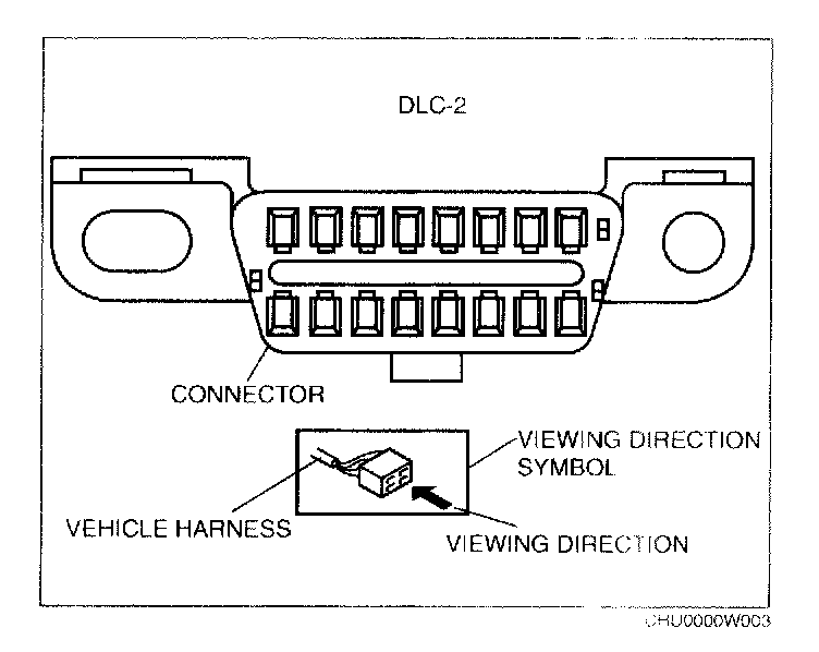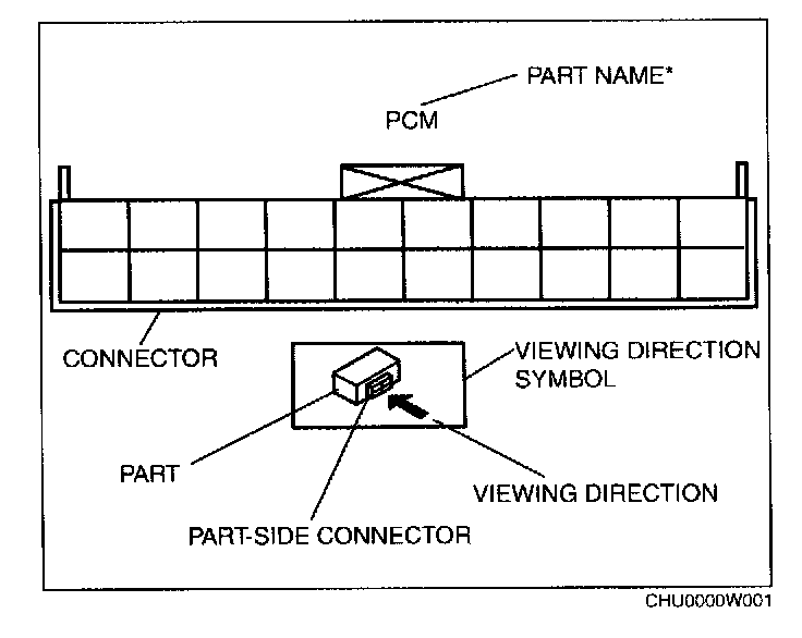 When it is necessary to show the terminal side of vehicle harness-side connectors, such as the following connectors, the viewing direction is from the terminal side.