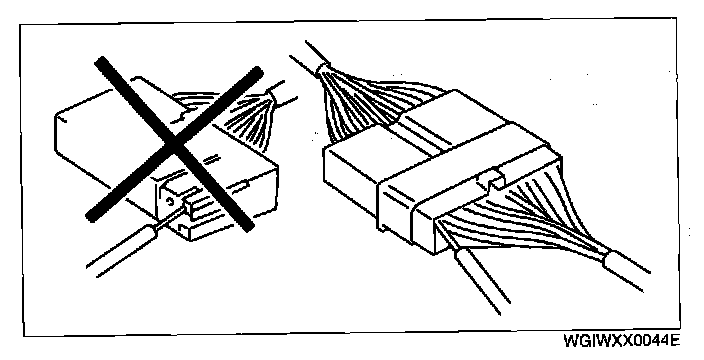 - inspect the terminals of waterproof connectors from the connector side since they cannot be accessed from the wiring harness side.