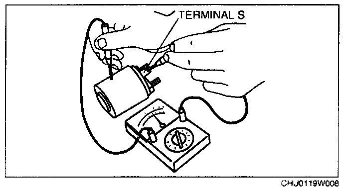 2. Inspect for continuity between terminal S and the body using an ohmmeter.