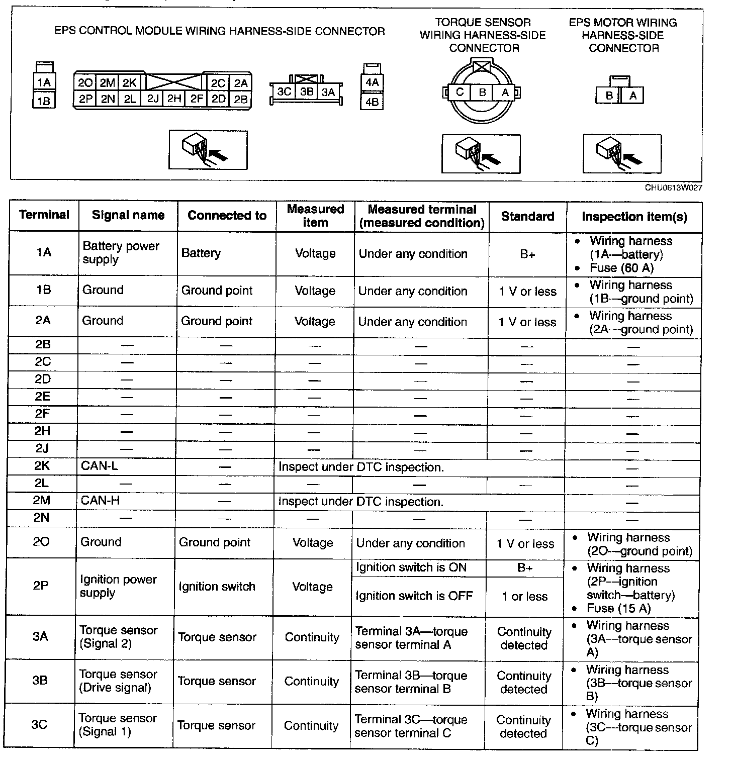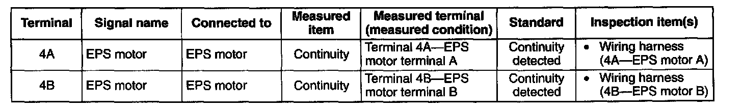 ^ When inspecting the torque sensor and EPS motor for continuity, turn the ignition switch off and inspect with the connectors for the EPS control module, torque sensor, and EPS motor disconnected.