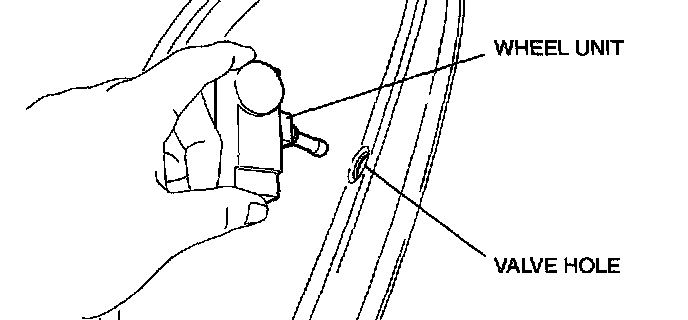 1. Insert the wheel unit valve into the valve hole so that the polyurethane foam side faces the rim.