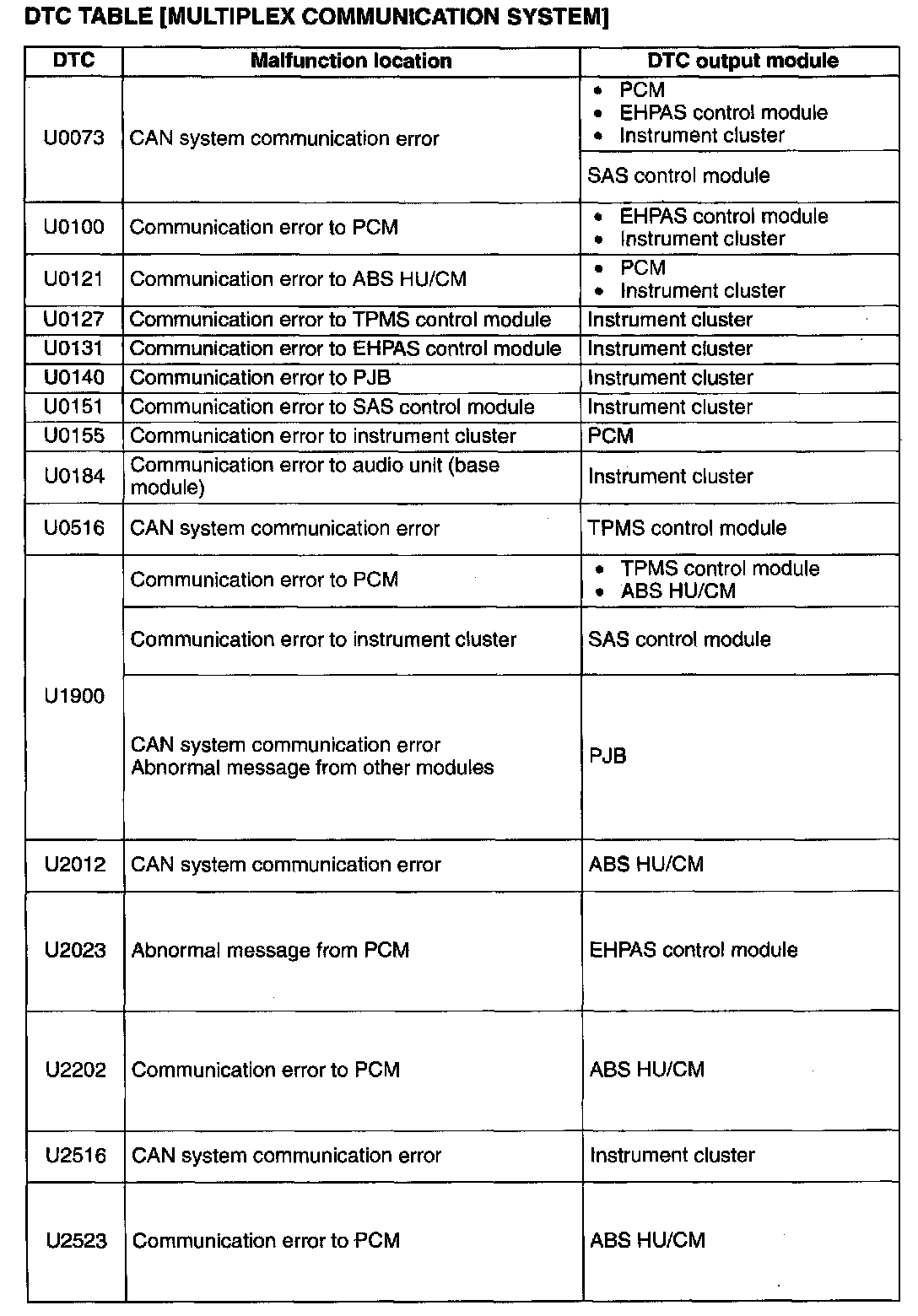 A L L Diagnostic Trouble Codes ( DTC )