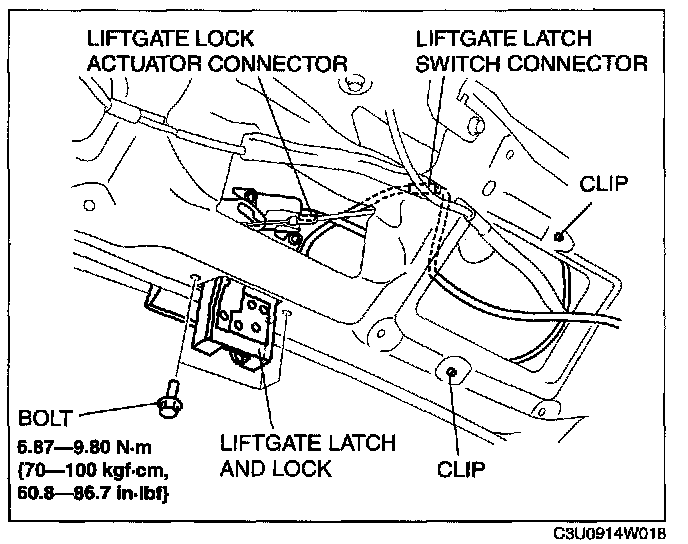 LIFTGATE LATCH AND LOCK ACTUATOR REMOVAL/INSTALLATION1. Disconnect the negative battery cable.