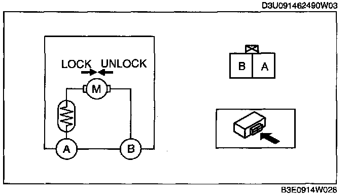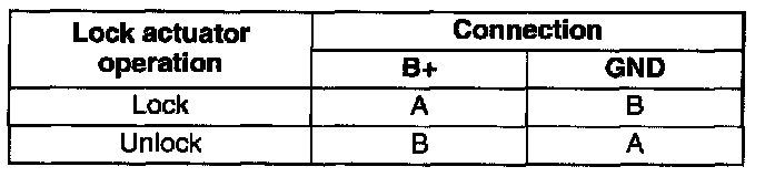 LIFTGATE LOCK ACTUATOR INSPECTION1. Apply battery positive voltage and connect ground to the corresponding liftgate lock actuator terminals, and inspect the liftgate lock actuator operation.