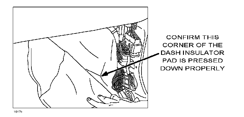 5. Ensure the corner dash insulator pad is positioned properly pressed down under the carpet before installing the felt pad.